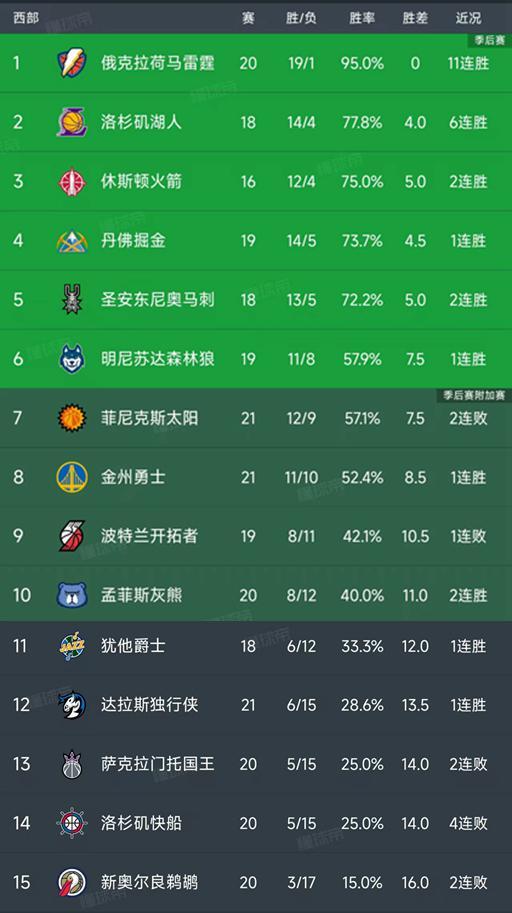 北京时间11月30日,今日的NBA常规赛结束了所有比赛,我们一起看看西部积分榜的变动,主要的信息如下:掘金130-112战胜太阳,勇士104-96战胜鹈鹕,森林狼119-115险胜凯尔特人、快船110-114憾负独行侠!